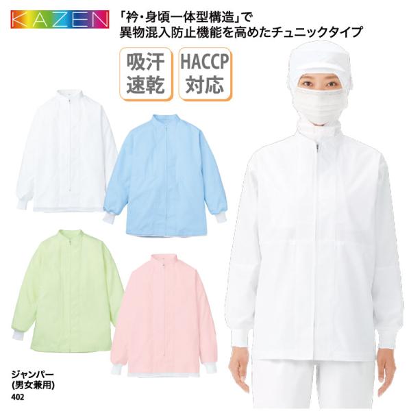 ジャンパー チュニック メンズ レディス 兼用 工場 食品 給食 病院 フード 異物混入 防止 大きいサイズ 吸汗 速乾 一体型 厨房 HACCP ハサップ 衛生 KAZEN 402