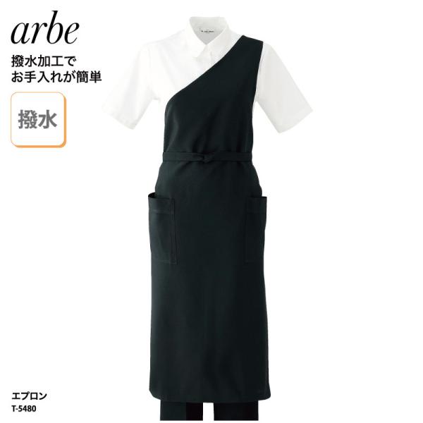 エプロン ワンショルダー 片掛け ミドル丈 黒 おしゃれ 調理 厨房 飲食 レストラン カフェ サロン エステ 男女兼用 チトセ アルべ arbe T-5480 刺繍 プリント