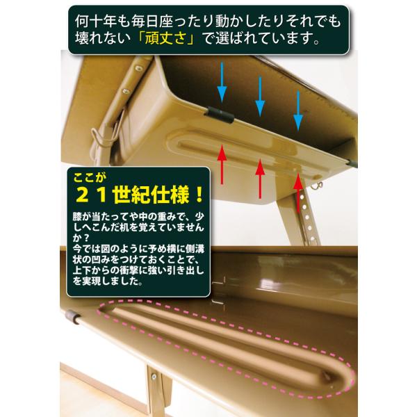 学校の教室を思わせる、レトロなデザインの国産スチール学習机。