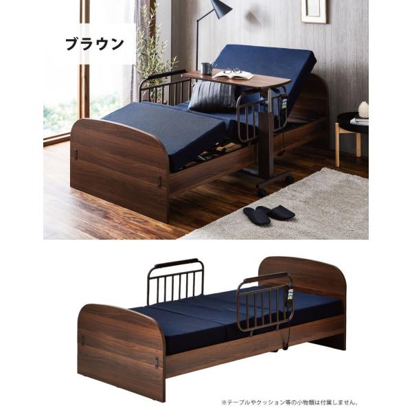 電動ベッド マット付き サイドガード2個付き シングルベッド 電動リクライニングベッド 手すり付き 木目調 木目柄 ブラウン メッシュ