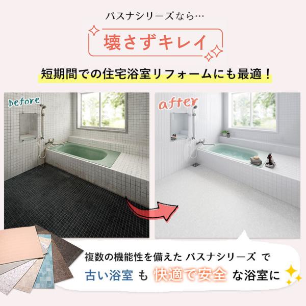 お風呂の床のリフォームに最適なバスナシリーズ「バスナフローレ」。浴室の種類を選ばず、お風呂を壊さず簡単に床のリフォームができます。