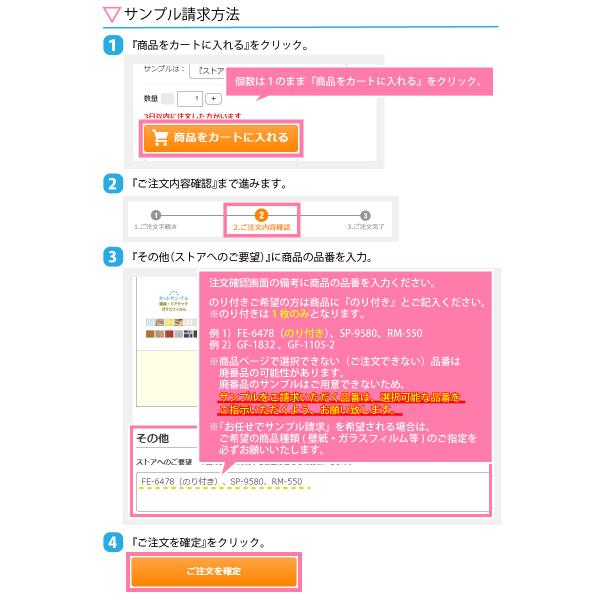 「ご注文確認画面」の「その他(ストアへのご要望)」欄にご希望の商品の品番をご記入ください。