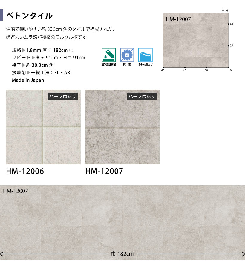 【最大★10%オフクーポン】 クッションフロア ベトンタイル HM-12006 HM-12007 サンゲツ HOME FLOOR ハーフサイズ 91cm巾