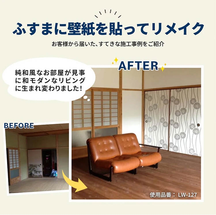 フィルムを剥がしてすぐ貼れる、生のり付き壁紙です。