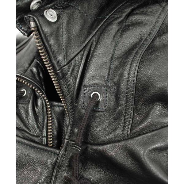 高機能素材中綿、脱着式ラクーンファー、袖口&裾のストームガードや肩・肘のパッド装着機能など、充実した機能はそのままに素材とパターンをリニューアルした進化モデル。乗車性を高めると共に、適度な厚みのしなやかな牛革を採用し防寒性と高級感がアップ。
