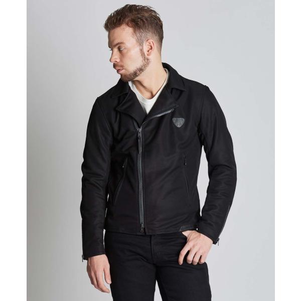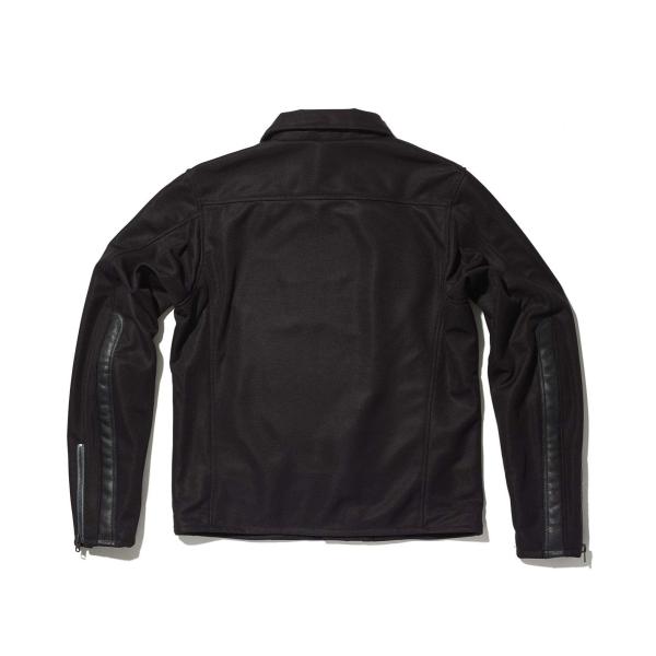 マット・ストレッチメッシュを採用した新感覚のメッシュジャケット。トラックトップジャャケットをモチーフにした本革切り替えのアレンジとダブルライダースのデザインミックスで、カジュアルに車種を限定せず着用できる。