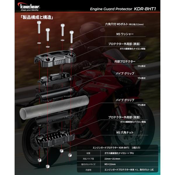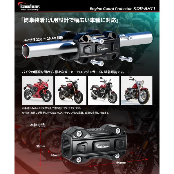 Kaedear(カエディア) プロテクター エンジンガード プロテクター 転倒 傷防止 保護 プロテクション パイプ径 22〜25.4mm KDR-BHT1