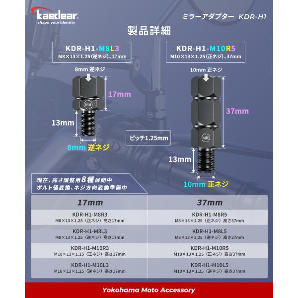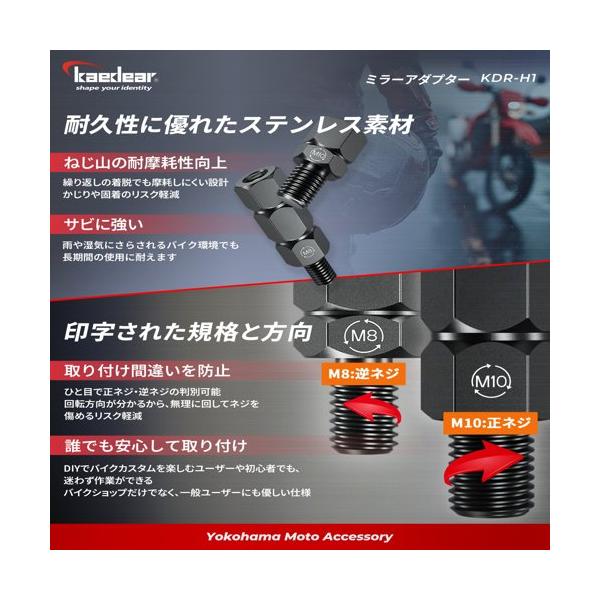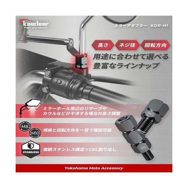 バイク ミラーアダプター 変換アダプター ミラー 高さ調整 正ネジ/逆ネジ 10mm/8mm アルミニウム合金 KDR-H1