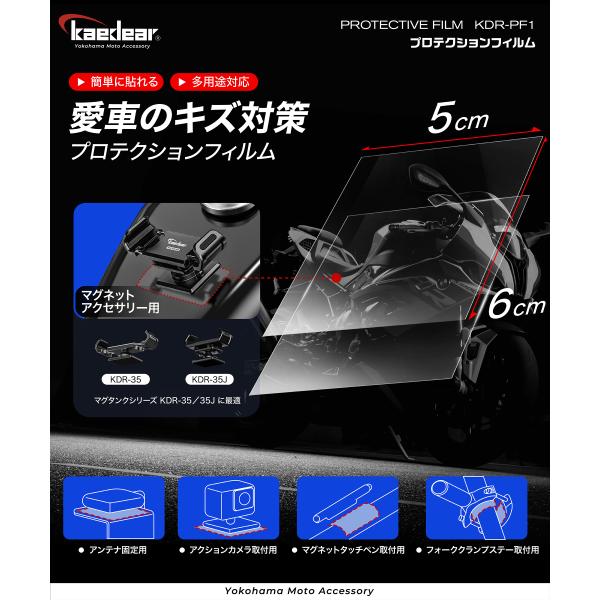 バイク用 プロテクションフィルム アンテナ固定用 アクションカメラ取付用 フォーククランプステー マグネット式アクセサリー 傷防止 保護フィルム KDR-PF1
