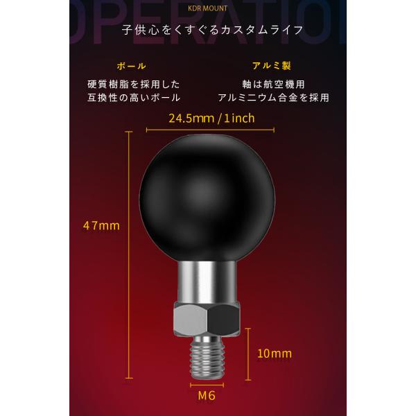 バイク 1インチ ボールマウント マウント部 パーツ マウントベース カメラマウント バイクマウント 25.4mm ボルト 固定 M6×10 1インチボールボルト KDR-R8D