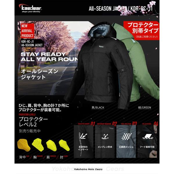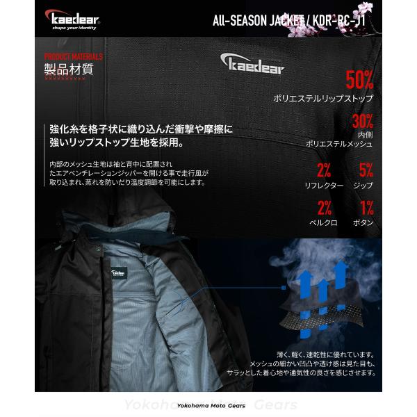 Kaedear カエディア バイク ジャケット バイク用 ライディングジャケット 撥水 オールシーズン リップストップ生地 Yokohama Moto Gear KDR-RC-J1