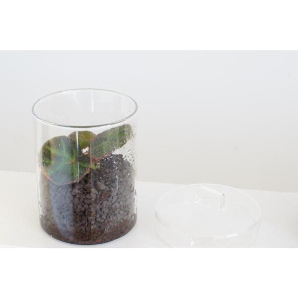 薄手のガラスの雰囲気も素敵な、ミニテラリウム容器無駄のない、シンプルなデザインで蓋付きsize直径10cm×高さ12cm