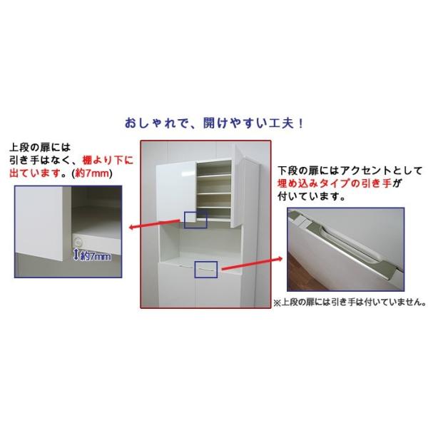 ■素材:扉前面・飾り棚上面/ポリエステル化粧板(鏡面仕上)、その他主材/プリント紙化粧合板