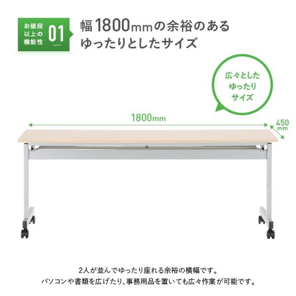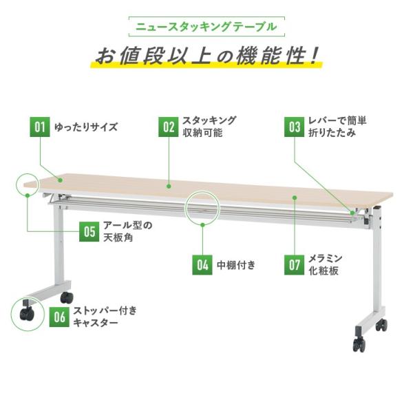 ニュースタッキングテーブル 幕板無し W1800 D450 H700 スタックテーブル 跳上式 会議テーブル 長机 長テーブル キャスター付き 法人宛限定 NTF-1845 SDS