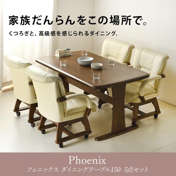 ダイニングテーブルセット 4人用 ダイニングセット 5点 4人掛け 食卓テーブル ダイニングチェア 木製 キャスター 回転 椅子 高級 肘付 フェニックス