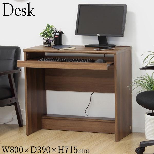 デスク 机 作業テーブル 薄型 スライドテーブル付 コンセント付 タップ収納 幅80cm 奥行39cm ホワイト 白 ブラウン 茶 木目 KR-0343