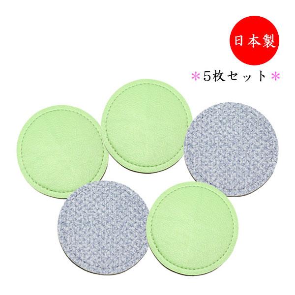 5枚セット コースター 丸型 円形 水滴受け グラス コップ カップ 滑り止め 消音効果 上質な日本製 ビニールレザー製 MT-2666