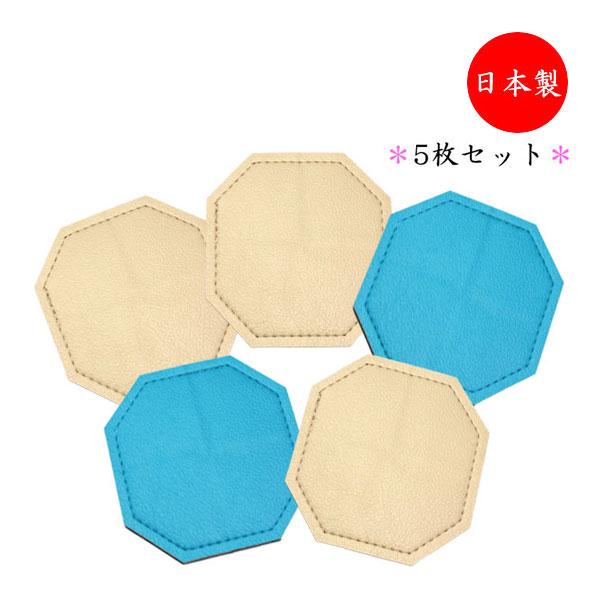 5枚セット コースター 八角形 水滴受け グラス コップ カップ 滑り止め 消音効果 上質な日本製 ビニールレザー製 MT-2669