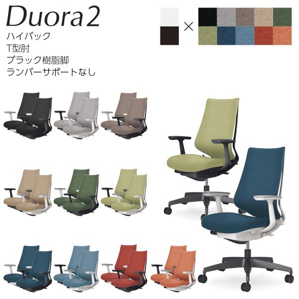 コクヨ C08-B210C_1 オフィスチェア Duora2<デュオラ2> クッションタイプ ハイバック T型肘 ブラック樹脂脚 ランバーサポートなし