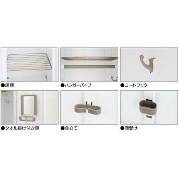 ●外寸法:608×515×1790●内寸法:252×475×1632●材質:本体・扉/鋼板、焼付塗装●付属品:上網棚・下網棚・ハンバーパイプ・コートフック・タオル掛け付き鏡・傘立て・滴受け