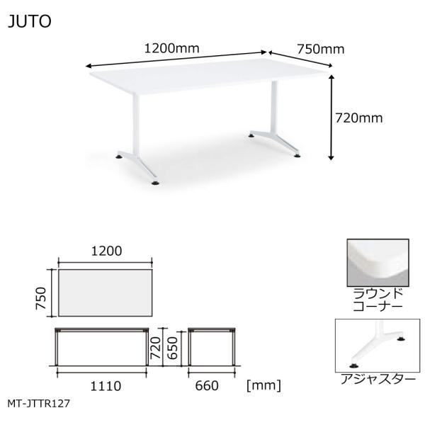 コクヨ MT-JTTR127 JUTO T字脚タイプ 天板角形 ラウンドコーナー アジャスター脚 W1200D750