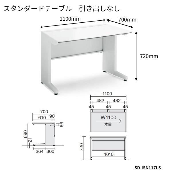 コクヨ SD-ISN117LS iSデスクシステム スタンダードテーブル センター引き出しなし W1100D700