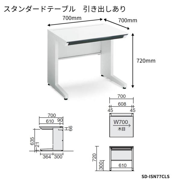 コクヨ SD-ISN77CLS iSデスクシステム スタンダードテーブル センター引き出し付き W700D700