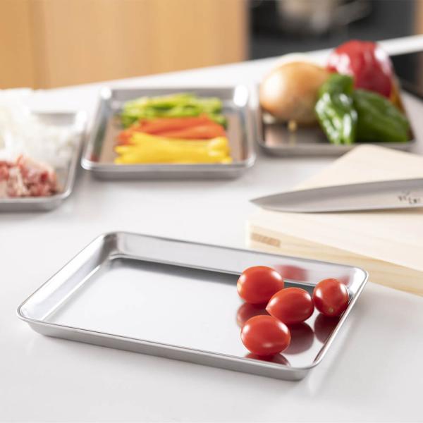 使わない時は重ねてコンパクトに収納できる、ステンレス製のトレー5枚セットです。切った野菜などを置いたり、料理の下ごしらえや冷凍食品の解凍など、様々な用途で大活躍!ステンレス製なので耐久性はもちろん、サビにくいから毎日のお手入れも簡単です。食器洗い乾燥機対応、安心の日本製です。 【 爆買 】