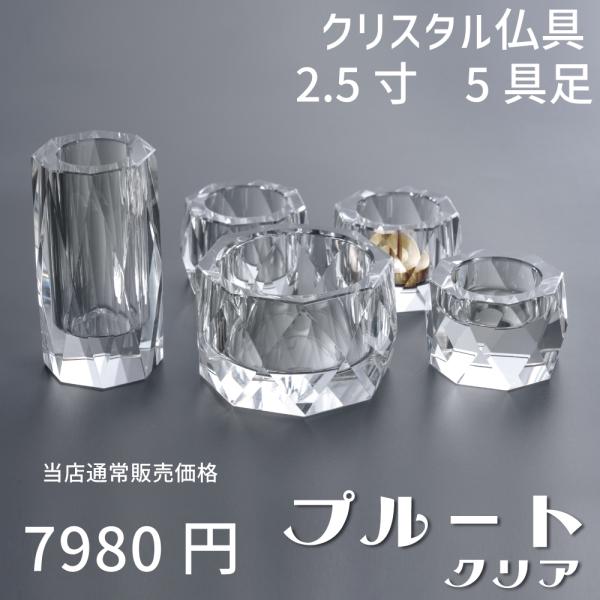 【最強配送対応】仏具 セット ベガ クリア 5具足 2.5寸 クリスタル仏具 モダン仏具 おしゃれ 香炉 花立 蝋燭立て 仏飯器 茶湯器
