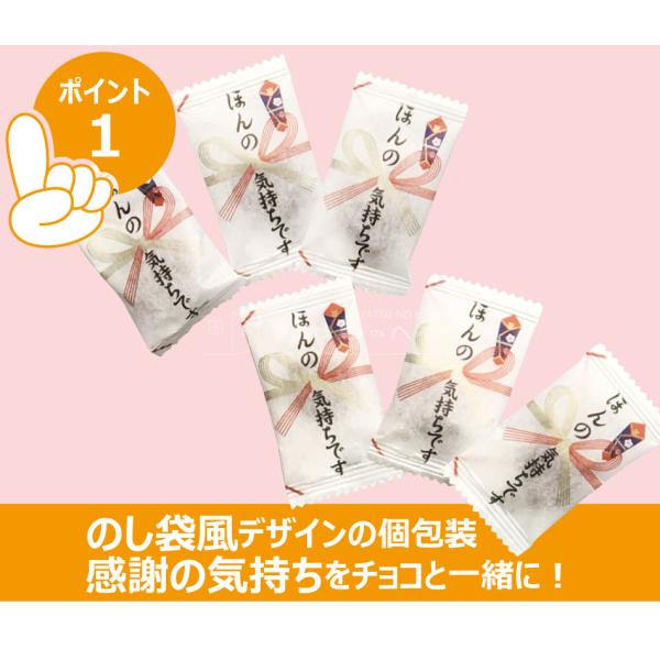 ◆のし袋風個包装に一口サイズのハート型チョコが一つ入っています。