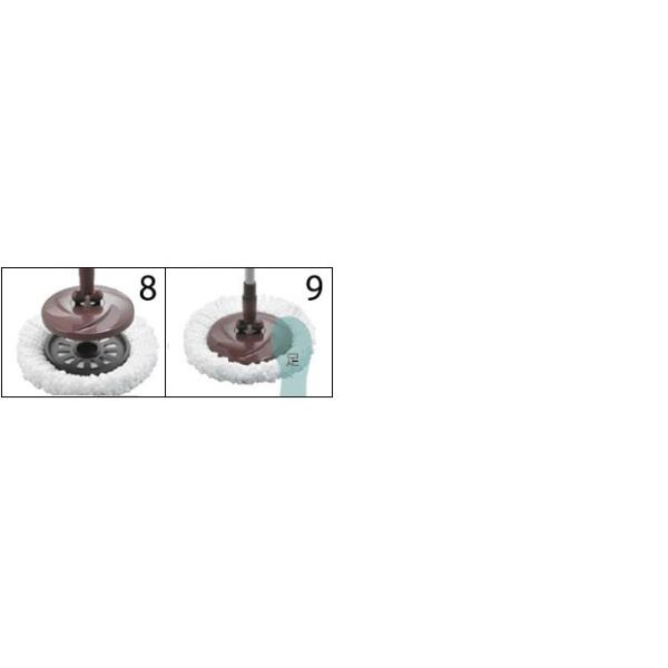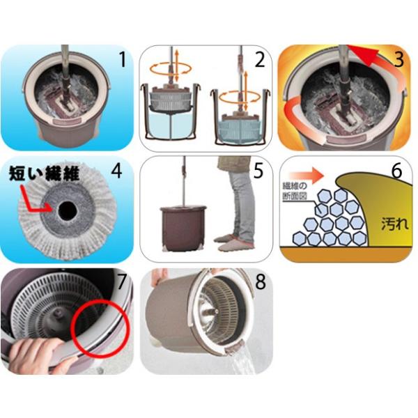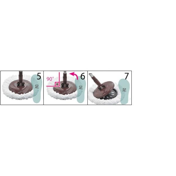 モップを回転させて洗浄、脱水。手を汚さずに水拭きができます。