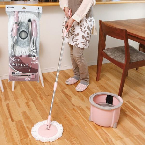 アズマ公式 回転モップ トルネード丸型モップ 拭き幅26cm×全長108〜130cm ピンク TSM547PI