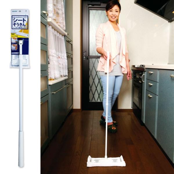 シートも雑巾も簡単にセットできる フローリングワイパー伸縮柄