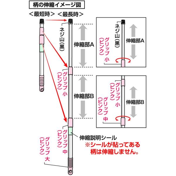 柄は伸縮自在で、使いやすい長さで固定できます。