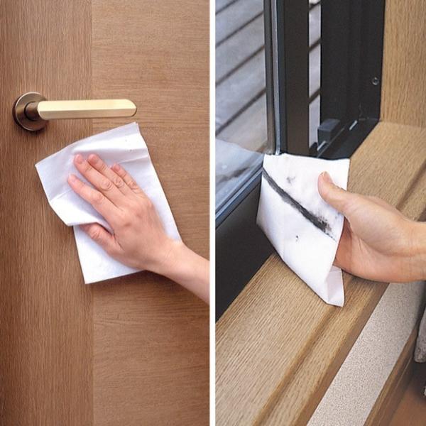 除菌剤配合で、から拭きでは取れなかった砂ボコリや皮脂汚れもキレイに拭き取れます。