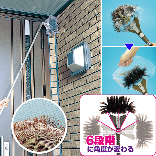 玄関まわり・軒下・ガレージ・植木などのホコリやクモの巣をシートに絡ませて取るブラシ。