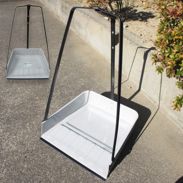 丈夫な薄型の、鉄板ちりとりです。大きなゴミもたくさん掃き取ることができます。屋外での掃除にぴったり。ゴミハサミがセットできるフォルダー付き。
