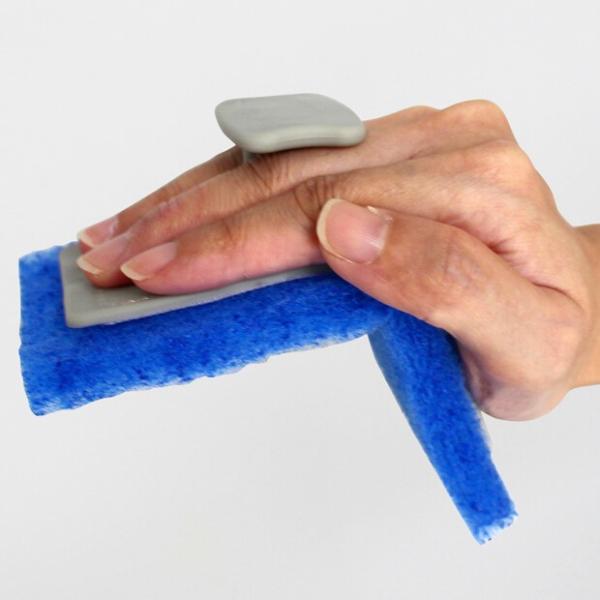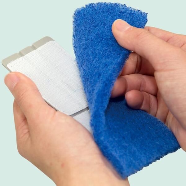 研磨布(研磨材付きスポンジ)をグリップに貼り付け、こするだけ。