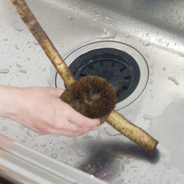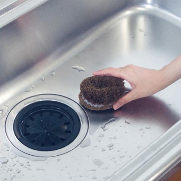 ゴムの働きで水ハネしにくく、型崩れしないタワシです。使いやすい小型タイプ。