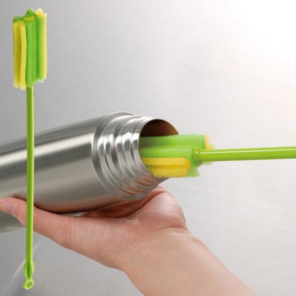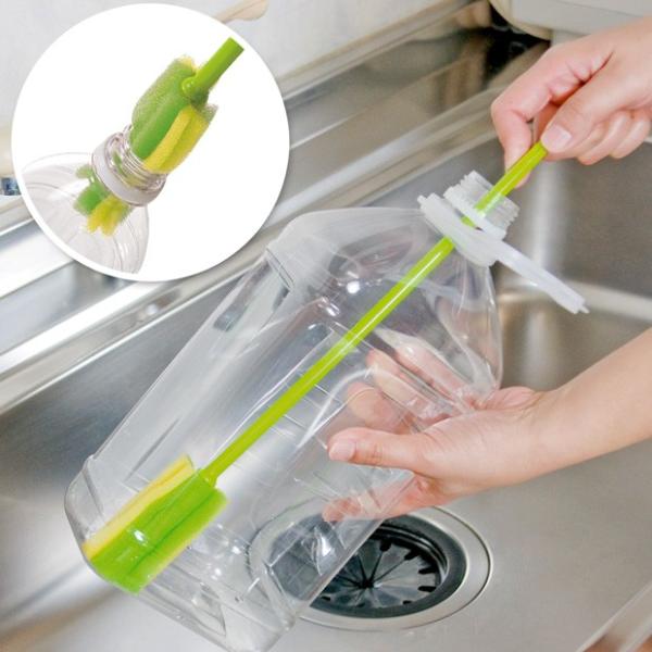 ロングタイプなので洗いにくいペットボトルの底もしっかり洗えます。
