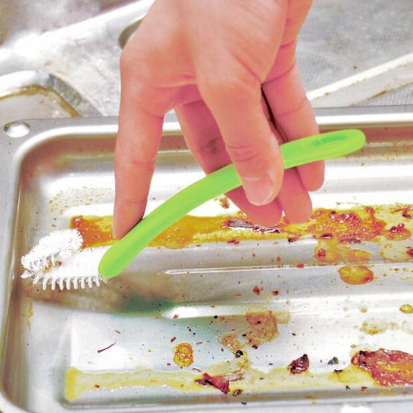 グリルの皿もブラシの平らな部分で効率よく洗えます。