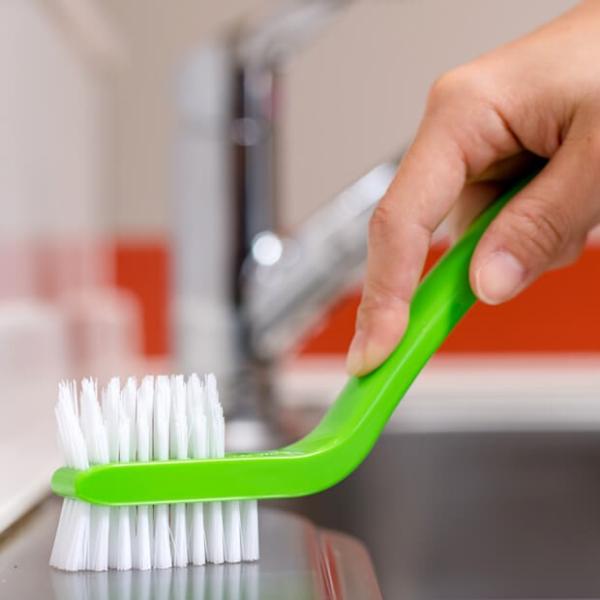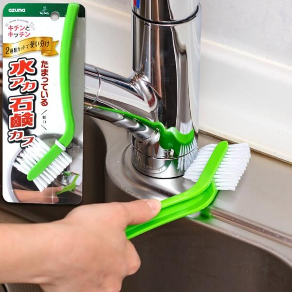 上下両面についたブラシで、蛇口まわりの水アカ、ヌメリをキレイに落とします。