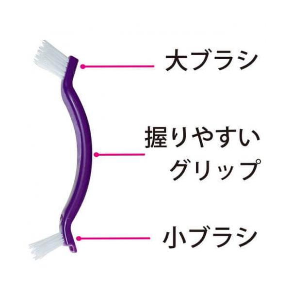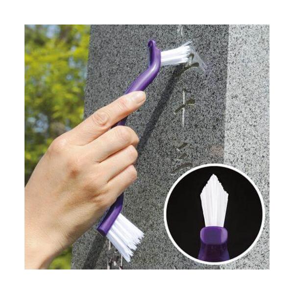 V字カットのブラシだから墓石の細部にぴったりフィットします。ブラシの両端についた大小2種類のブラシを使い分けてお掃除できます。