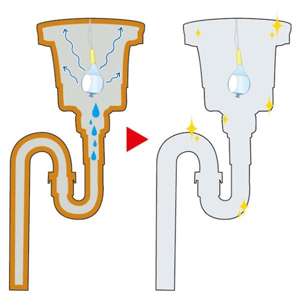 流し台の排水口ストレーナーや排水パイプのイヤなぬめりを洗浄し臭いを抑えます。