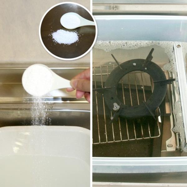 五徳、ガスレンジ受け皿・鍋・やかんなどにこびりついたコゲ落としに。