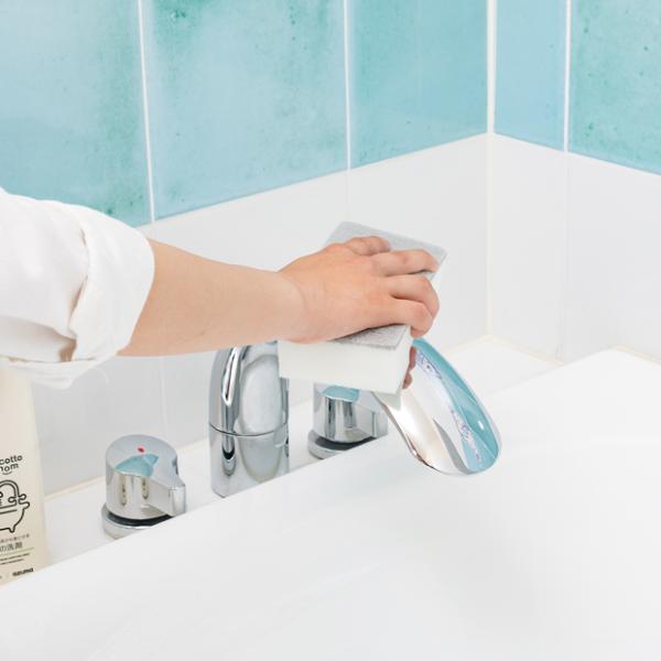 水あか等の汚れに強い弱酸性でありながら、皮脂汚れにも強い成分を配合しているので、水あか・石けんカス・ヌメリ・皮脂汚れ等の様々な汚れを落とすことができます。