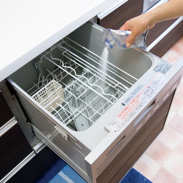 食器洗い機の庫内に付着した、水洗いや洗剤だけでは落ちない水アカや黒ズミをスッキリ落とします。手の届きにくい部分の汚れや、目に見えない所まで洗浄します。