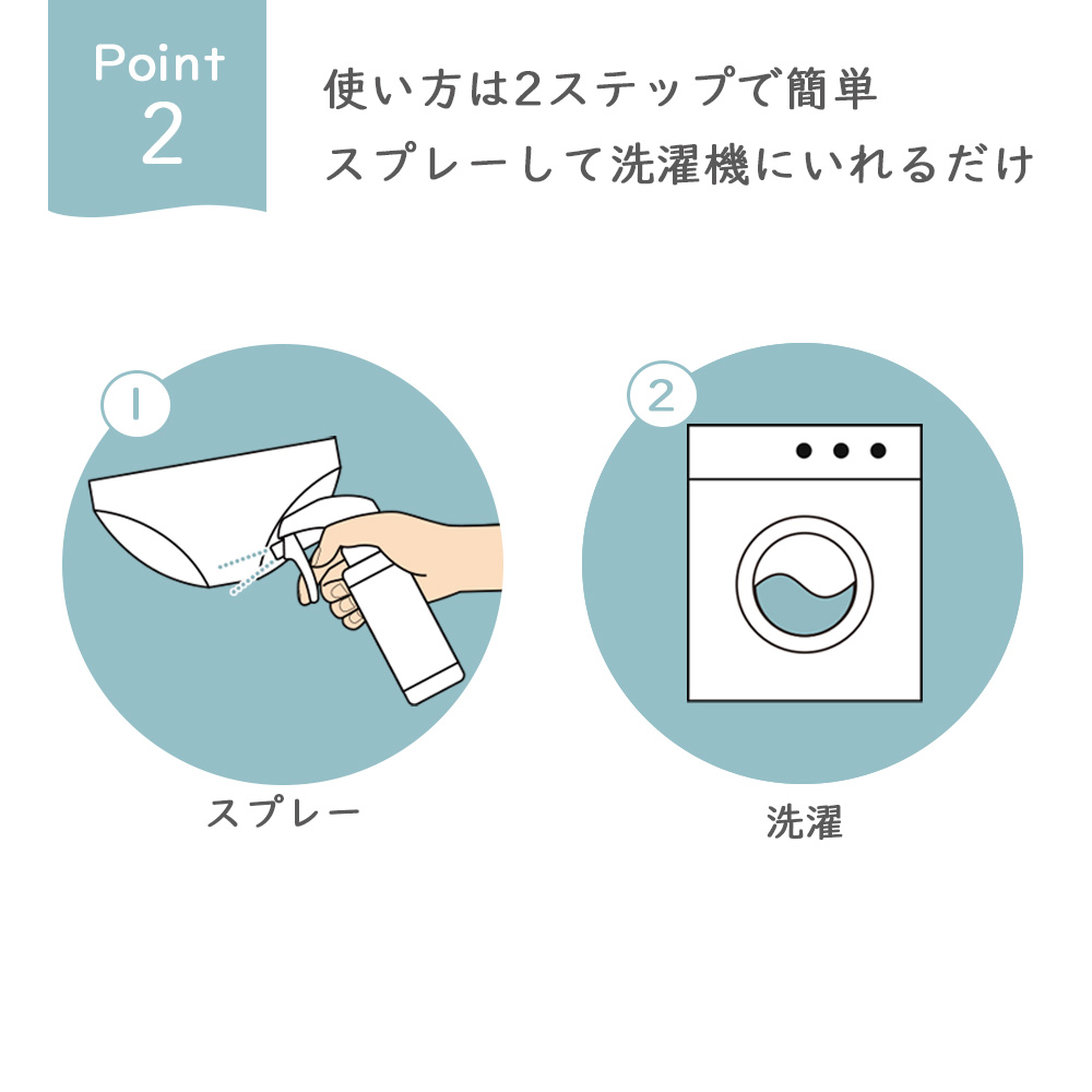 今までの洗剤だけでは落としにくかった血液・おりもの・分泌物などの汚れすっきり落とします。