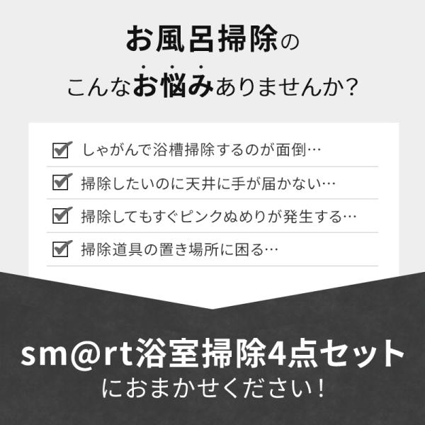 アズマ公式 sm@rt 浴室清掃 4点セット マグネット 収納(浴室床洗い、浴室床洗いスペア、浴槽洗いFM、水切り ワイパー)磁石 モップ ブラシ お風呂 風呂
