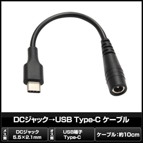 DCジャック5.5×2.1mm→USB Type-C ケーブル 10cm
